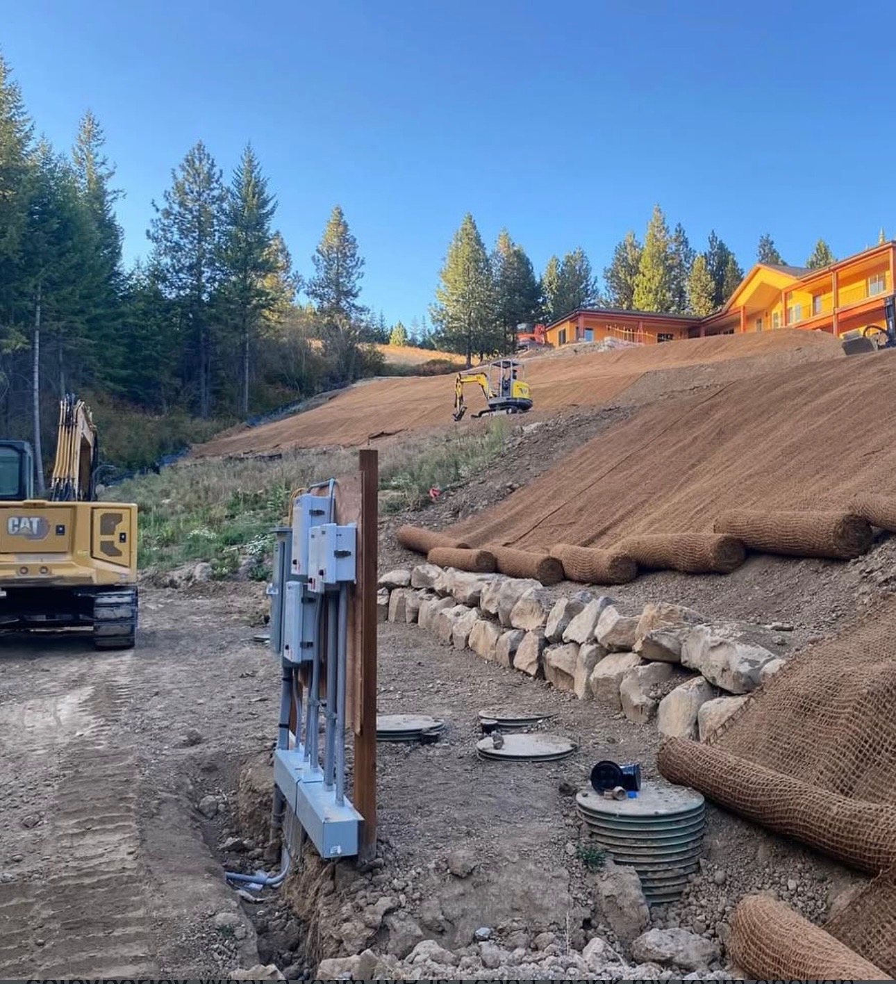 Custom home sites, steep slope environments, and erosion control systems